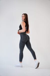 Bezszwowe legginsy Push Up, z wysokim stanem, zwężającym optycznie talię.